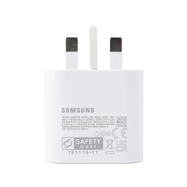 شارژر دیواری 25 وات سامسونگ مدل EP-TA800 نه تنها سریعترین دستگاههای سامسونگ را به سرعت شارژدهی میکند، بلکه با مدلهای دیگر هم سازگاری خوبی دارد. شارژها از مهم ترین عوامل طولانیتر شدن عمر گوشی و باتری هستند، به طوری که اگر از شارژر مناسب و مرغوب برای گوشی خود استفاده نکنید میتواند آسیبهای جدی به گوشی شما وارد کند. اگر به دنبال یک شارژر دیواری قدرتمند و سریع برای شارژ کردن دستگاهتان میگردید، ما به شما خرید شارژر 25 واتی سامسونگ را پیشنهاد میدهیم. برای دستگاههای سازگار با استاندارد PD 3.0 حداکثر شارژ 25 وات دریافت خواهید کرد، در حالی که دیگر دستگاهها با سرعتی که میتوانند اداره کنند شارژ میشوند. وزن این شارژر دیواری 45 گرم است و درگاه ارتباطی آن از نوع USB Type-C است. لازم به ذکر است این محصول بدون کابل است و باید به صورت جداگانه کابل مناسب را تهیه کنید.